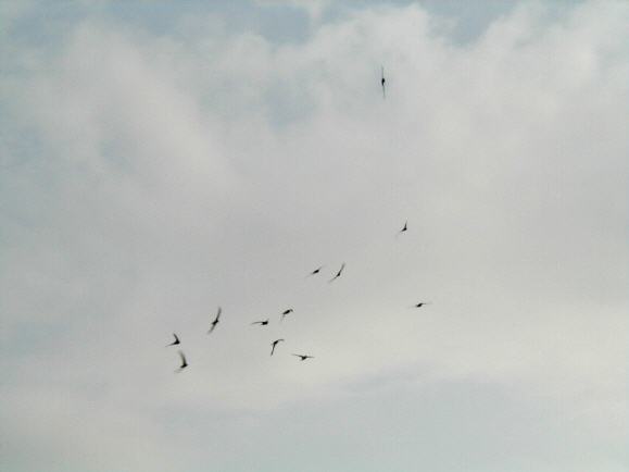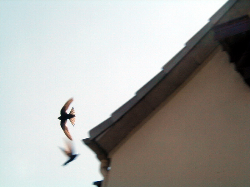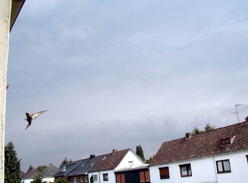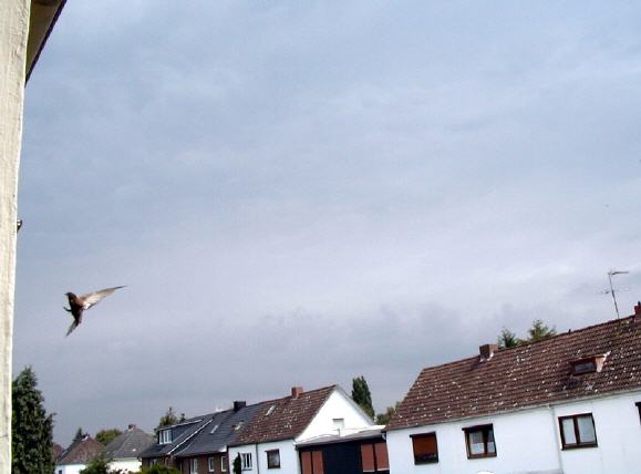 2004 kamen bei mir die ersten Mauersegler am 28.04.2004 an, und am 4.September 2004 verließ das letzte Junge mit den Altvögel das Nest. Insgesamt waren es 2004 : 6 Paare ; 2 Paare mit je 1 Jungen und 4 Paare mit je 2 Jungen.